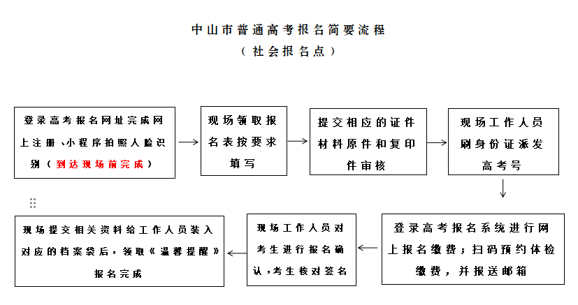 为妥善做好我市2026年普通高考社会考生补报名工作,我市社会报名点统一集中报名时间为3月3-4日。请符合中山市高考报名条件的社会考生认真阅读以下内容,并按要求前往社会报名点完成报名确认。