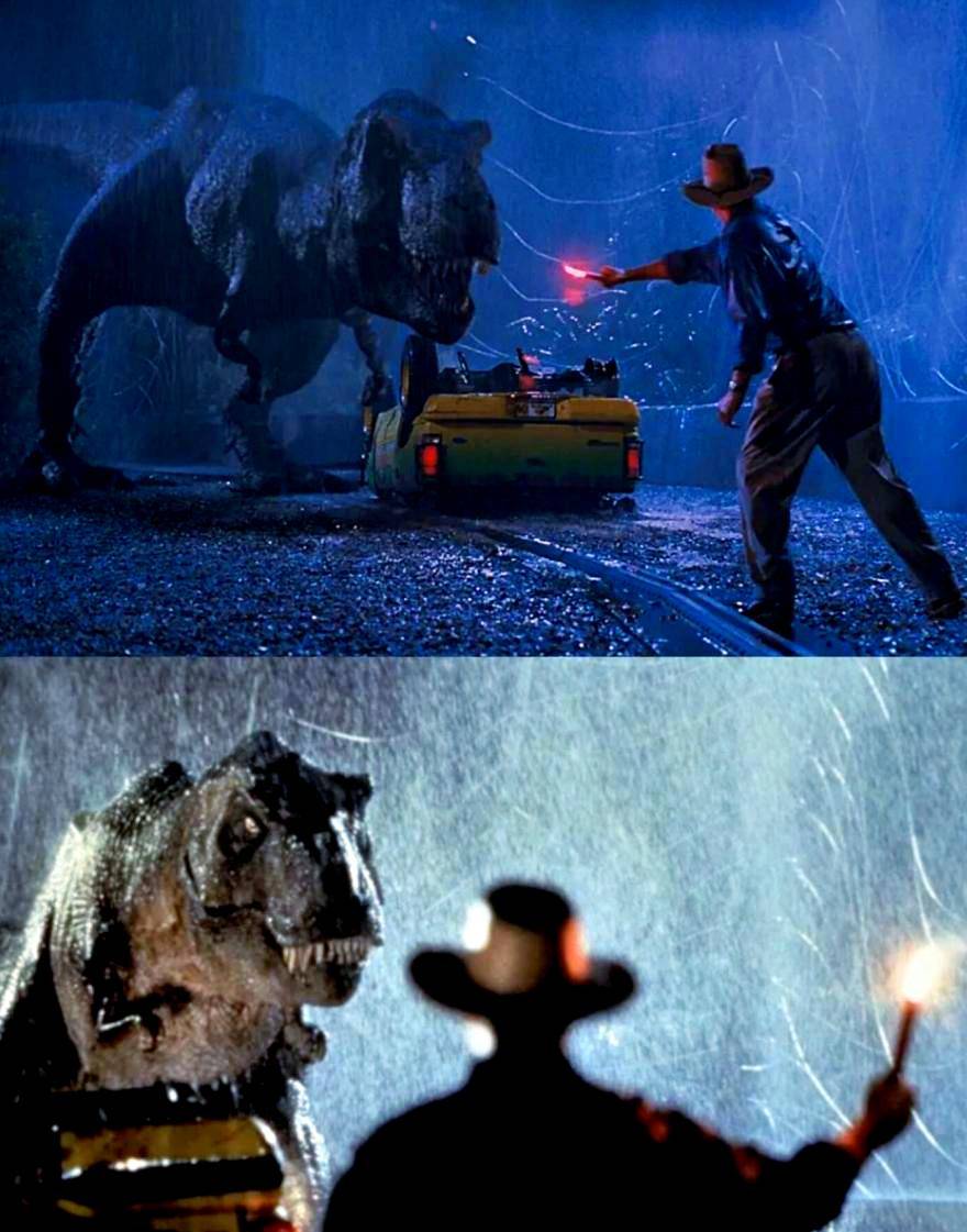 对比案例:与1991年同期上映的惊悚片《沉默的羔羊》相比,《侏罗纪公园》在减少40%暴力镜头的同时,通过精湛的音效和剪辑,成功维持了影片的紧张氛围。