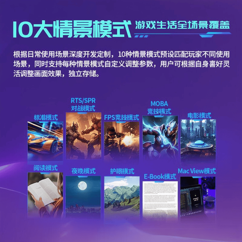 ▶智能防烧屏技术:搭载AI智能监测和智能准星视觉增强,自动调节背光和亮度,有效防止烧屏,让您的显示器使用寿命更长。