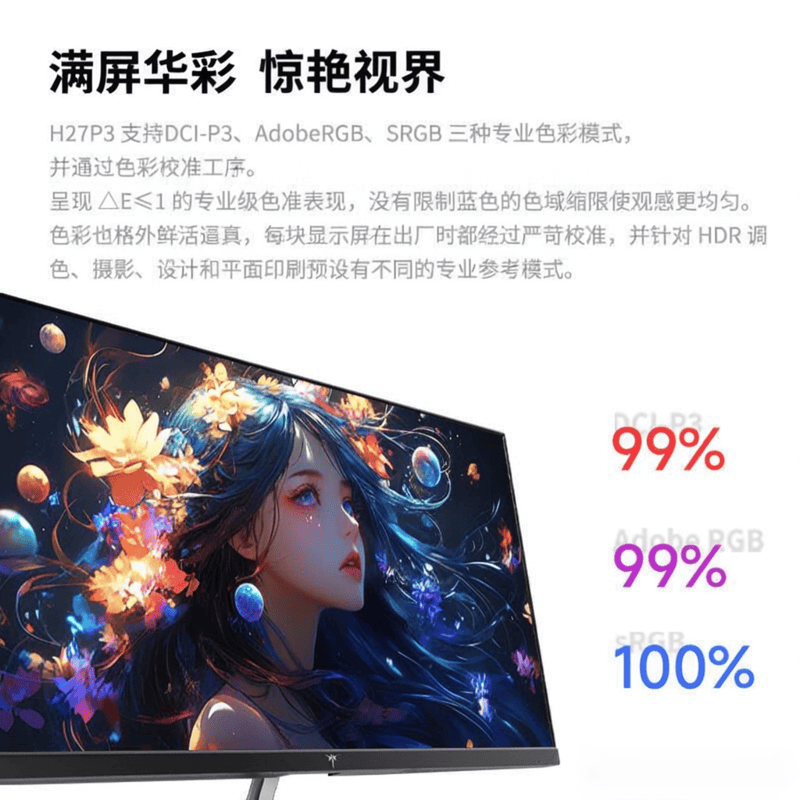 ▶专业色彩还原:覆盖99%DCI-P3色域,△E1的专业级色准,无论是色彩丰富的影视作品还是严谨的设计图纸,都能还原真实的色彩,让你的创作更加精准。